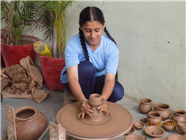 Learning Skills: Participants took part in various group activities. One of the activities was learning pottery. The students made pots of different shapes and decorated and painted them. Another activity was learning the art of making envelopes of different shapes and decorating them. They shared various ideas among themselves. In another activity they learnt how to wrap gifts and make them look attractive. The items made by the students were displayed at the school exhibition, and the money collected was used for charity. Click here for pictures